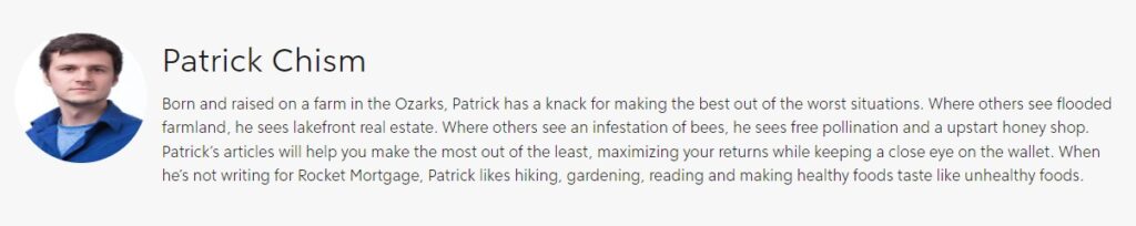 While the content on the Rocket Mortgage website is not objectively harmful, it is unclear from the on-page visuals whether the author of Rocket Mortgage is a qualified expert in real estate or qualified to give legal advice at all.